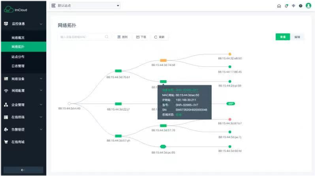 网络连接拓扑自动生成,网络设备运行状态一目了然。
